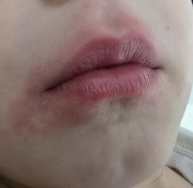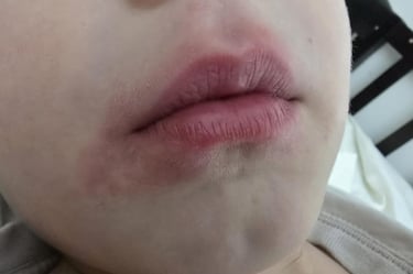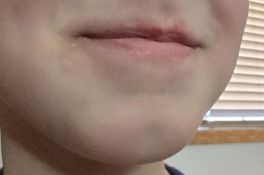 This is a before-and-after photo of one of my son's flare-ups. We put the Bee Butter on his lips overnight, and he woke up with nothing there. Mind you, we have tried chapstick and other products that sometimes take days to get rid of the flare-ups.